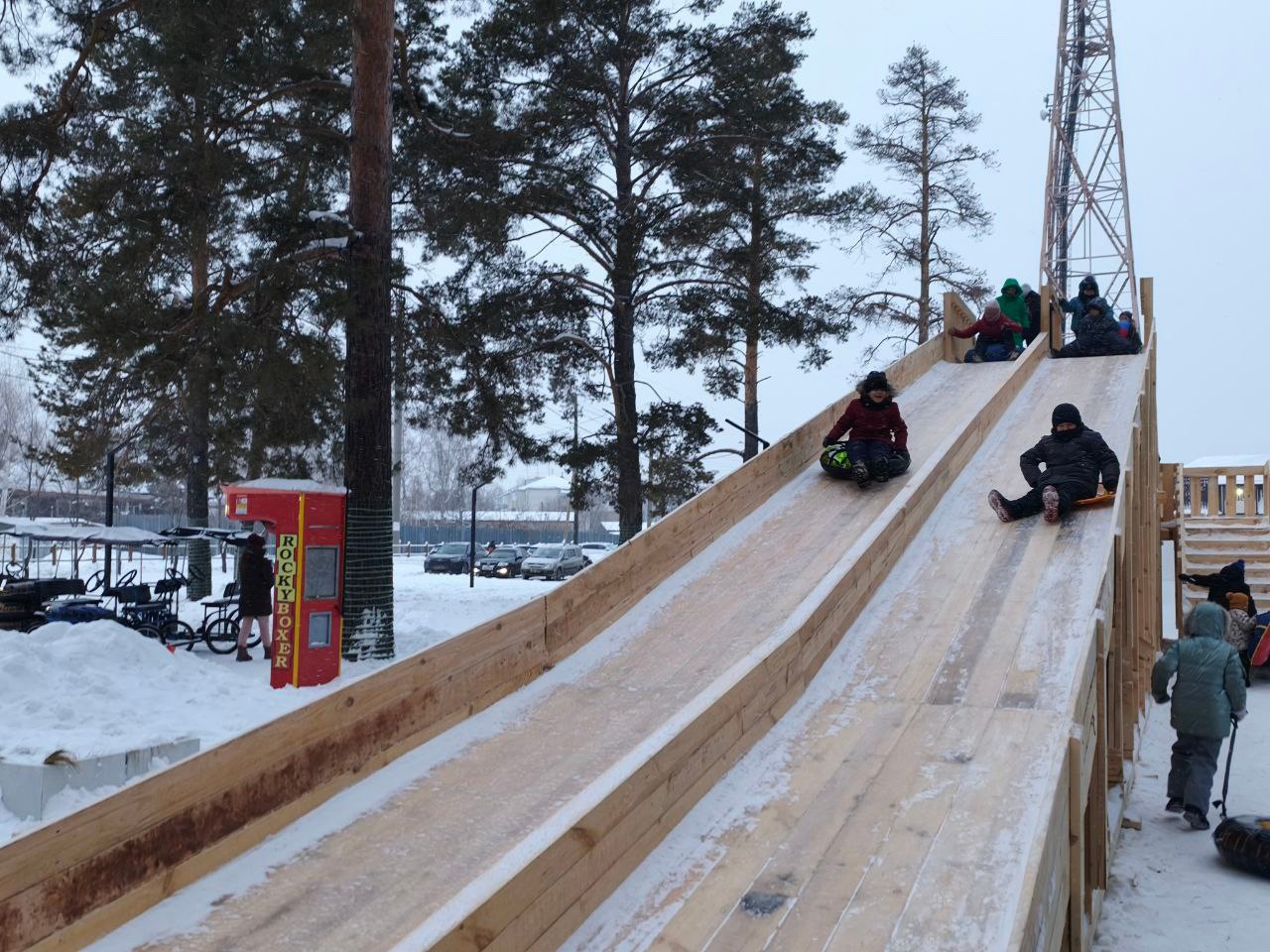 В этом году для активного отдыха в зимнее время на территории экопарка инвестором установлена большая горка на входе в экопарк со стороны улицы Пригородной. Ребятня и взрослые катаются на ней с удовольствием.