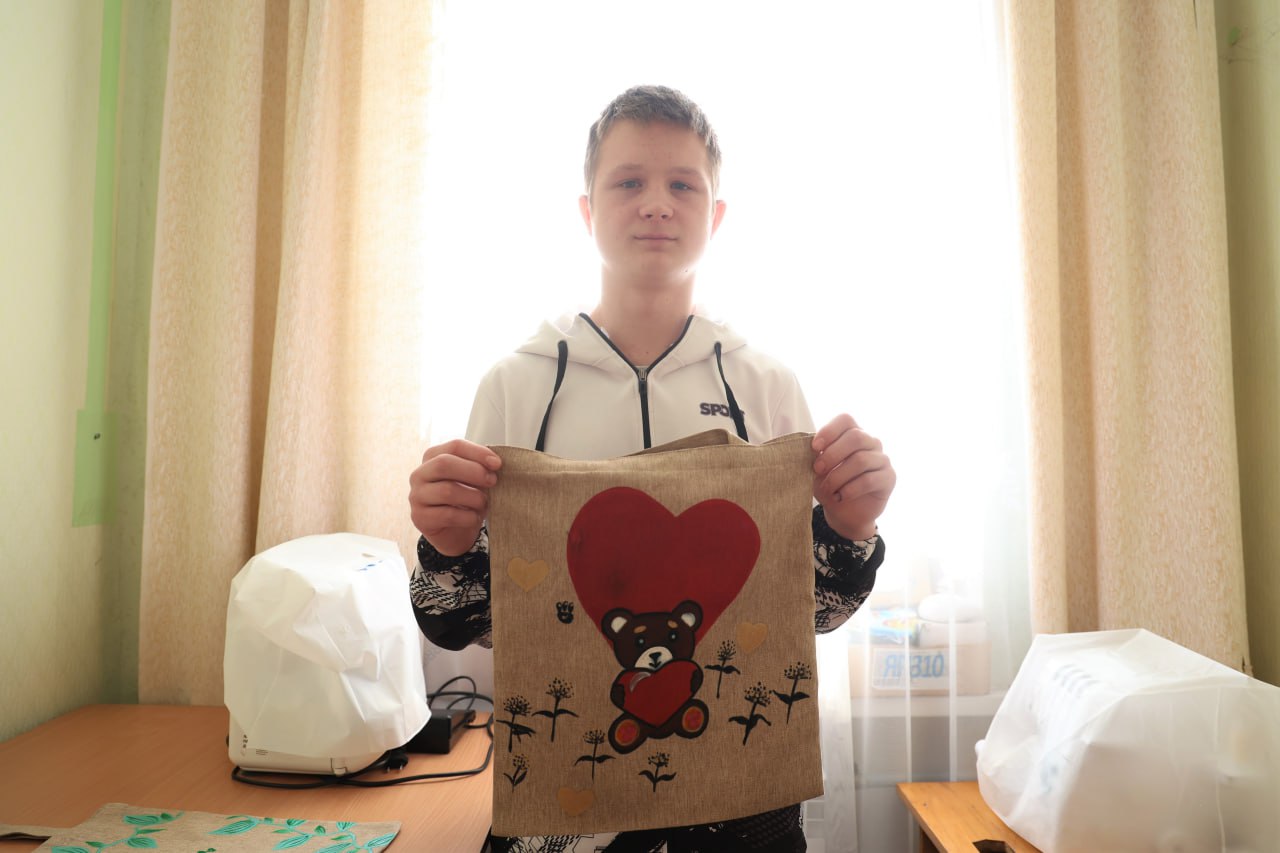 Один из воспитанников, Кирилл, освоил изготовление шопперов - тканевых сумок для покупок, которые потом продают в лавке Далматовского монастыря. На вырученные деньги закупают материалы для дальнейшей работы. Он отмечает, что ему очень нравиться на новом месте: