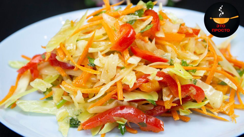 На сковороде разогреваем масло и обжариваем нарезанный лук до золотистости. Лук затем убираем, а масло выливаем в миску с капустой. Готовую массу обязательно нужно перемешать и оставить настаиваться в холодильнике на 24 часа. Это гарантирует, что салат раскроет все свои вкусовые нотки.