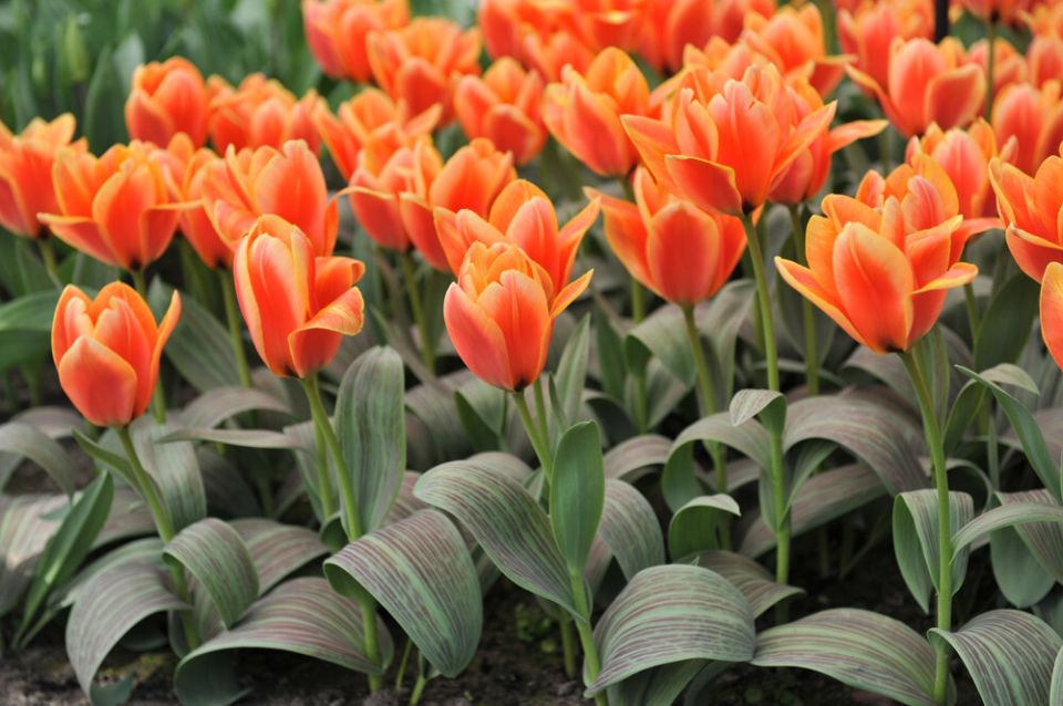 - Тюльпаны Грейга: Компактные растения, до 30 см высотой, которые выделяются эффектными лиственными узорами.