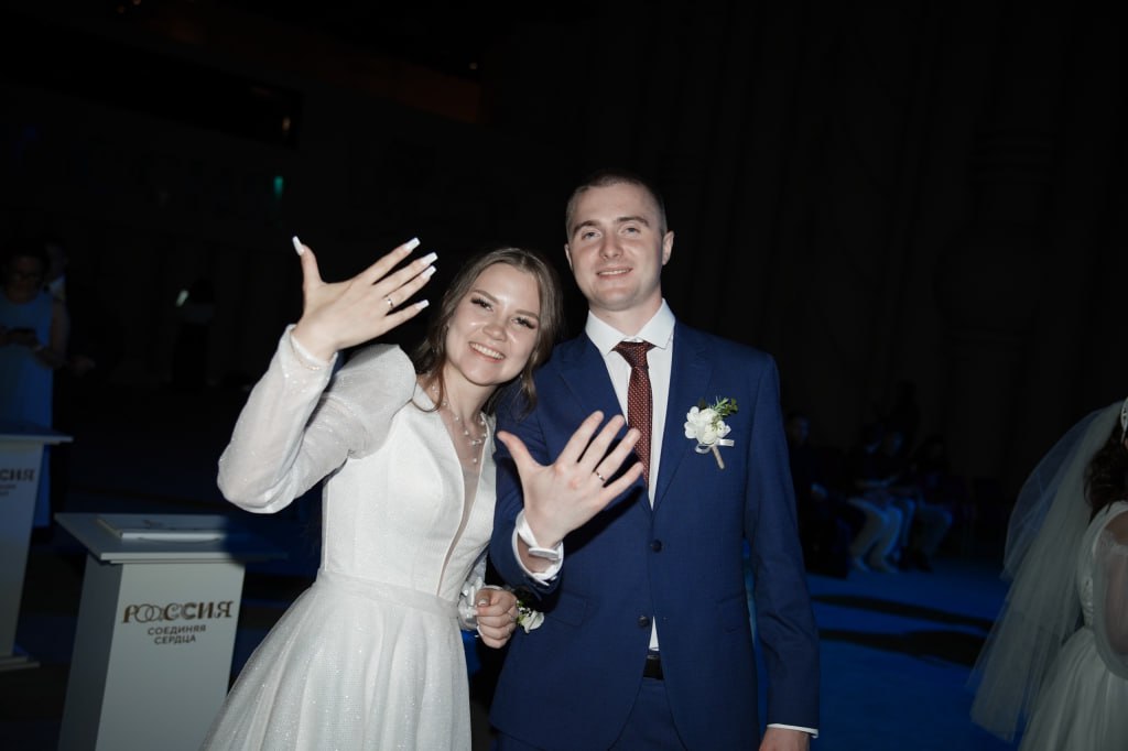 Первый свадебный фестиваль прошел в рамках Международной выставки-форума «Россия», поженив 221 пару.