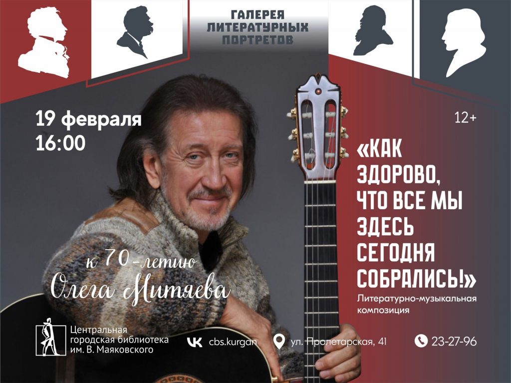 В рамках проекта «Галерея литературных портретов» курганская библиотека им. Маяковского приглашает всех желающих стать гостями литературно-музыкальной гостиной по творчеству Олега Митяева.
