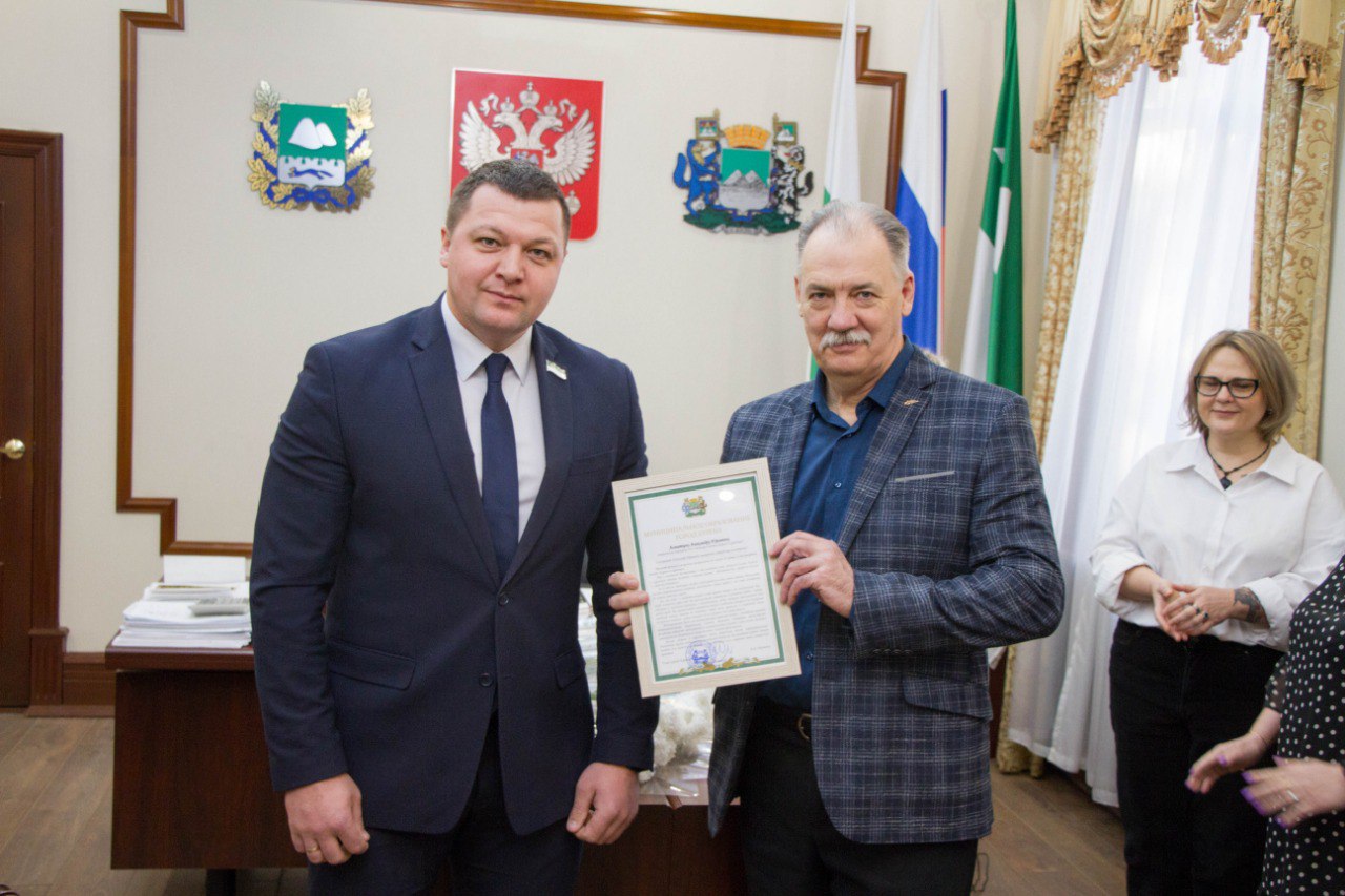 Поздравил коллектив редакции с очередным юбилеем газеты. Сегодня это сплоченная команда единомышленников, которая рассказывает читателям о развитии города, о ярких событиях и значимых проектах, о талантливых людях, которые прославляют наш родной город. Они не просто фиксируют события. Они формируют общественное мнение, поддерживают диалог между городом и его жителями. Вручил Почетные грамоты главы города и Благодарственные письма администрации города