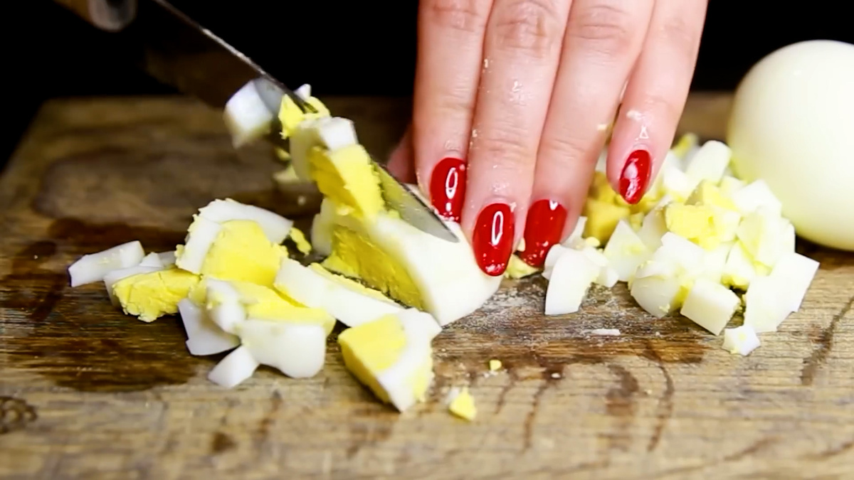 Порядок действий прост: нарезать яйца и кальмара кубиками, добавить нарезанный огурец и капусту. Заправить майонезом, чтобы получился вкусный и легкий салат.