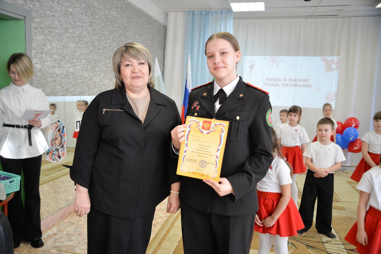 Поздравила дошколят с таким важным событием в их жизни участник «Движения Первых», ученица кадетского класса школы № 42 Мария Воденникова.