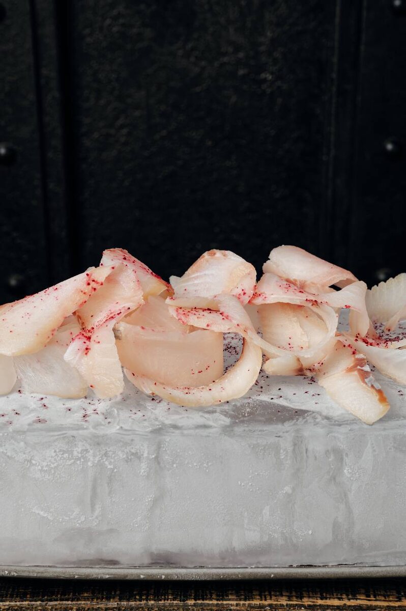 Для того чтобы получить по-настоящему уникальный продукт, муксун замораживают до экстремально низких температур. Такой способ позволяет нарезать рыбу тонкими, практически прозрачными пластинами, которые восхищают своей характерной текстурой и насыщенным вкусом. Каждая стружка раскрывает все оттенки аромата, даря гастрономическое наслаждение с первого укуса.