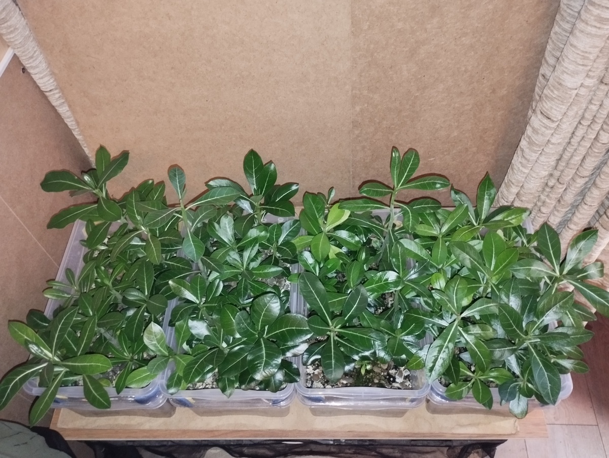 Высаженные в специальные пластиковые контейнеры для фитильного полива, адениумы наслаждаются теплом и светом теплицы, что способствует их активному развитию. Однако простая жизнь в теплице не обошлась без неожиданных сюрпризов: однажды, после ночного обхода, хозяева обнаружили целую «атаку» мелких адениумов, гоняющихся за загадочной мухой. В то время как адениумы веселились, возникла необходимость в более внимательном подходе к уходу.