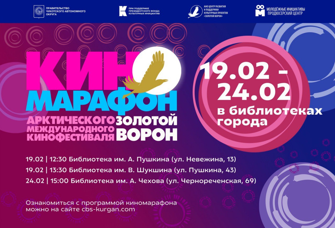 С 19 по 25 февраля в библиотеках города пройдут показы фильмов в рамках киномарафона десятого Арктического международного кинофестиваля «Золотой ворон».