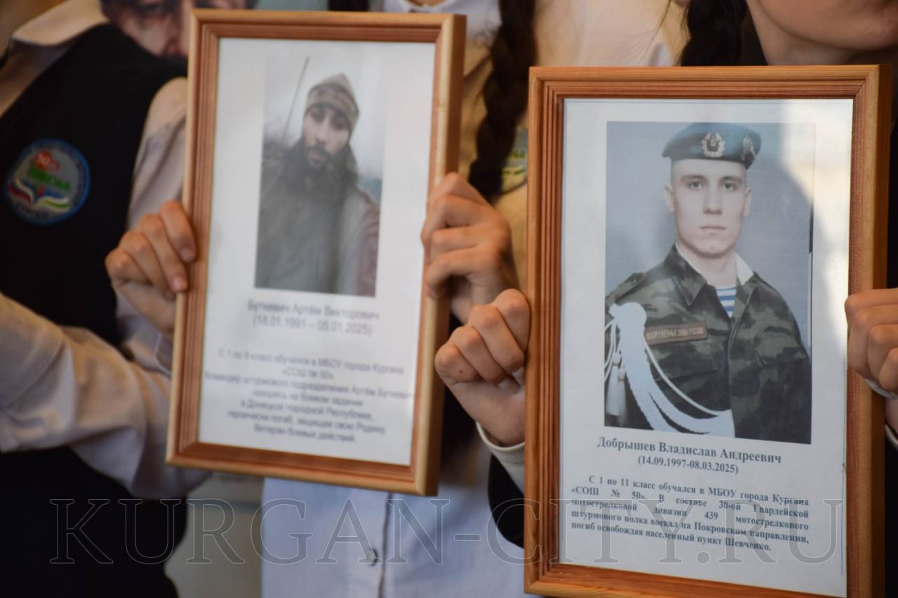 что настенные панно «Выпускники школы, погибшие на СВО» открыты сразу в двух корпусах школы. «Мы открываем панно, с которого на нас глядят наши ребята – выпускники, которые были такими же, как вы. Они шалили, участвовали в мероприятиях, становились гражданами своей Родины. И когда пришло время встать на защиту страны, не задумываясь, сделали свой выбор и вошли в историю. Мы гордимся каждым из них, помним каждого и будем помнить всегда. И сегодня говорим всем матерям, женам, сестрам, отцам, братьям – спасибо!», - обратился Михаил Тимофеев и призвал школьников и всех собравшихся соответствовать тому подвигу, который совершили выпускники, также помнить павших в годы Великой Отечественной войны, людей, работавших в тылу и благодаря которым Курган получил почетное звание «Город трудовой доблести». «Будем помнить всех павших на полях сражений специальной военной операции и бережно относиться к тем, кто сейчас продолжает ратный труд на полях сражений, кто каждый день приближает долгожданную победу. Наша задача в тылу – быть истинными патриотами своей страны и делать все возможное, чтобы эта победа наступила как можно раньше»