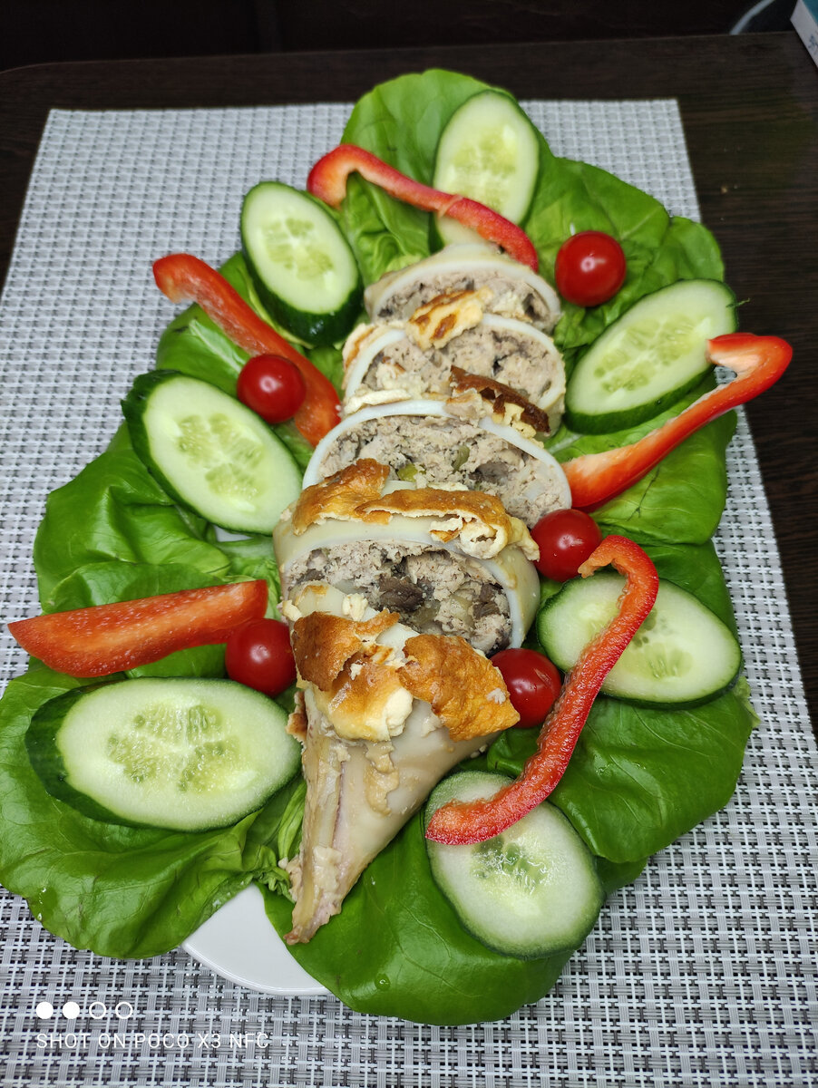 Кальмары запекаются в разогретой до 180-200 градусов духовке в течение 20-25 минут. Когда они будут готовы, нарезайте их, как рулет, и подавайте на блюде, украшенном овощами, пишет источник.