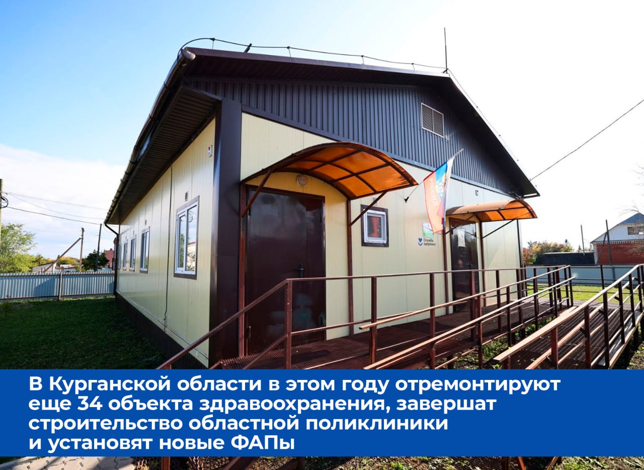 С 2019 года в Курганской области с привлечением всех источников финансирования отремонтировано и построено порядка 520 объектов здравоохранения. В том числе, новые детская и взрослые поликлиники в Заозерном, построен хирургический корпус областного онкологического диспансера, крупная амбулатория в городе Шадринске. Прошли капитальные ремонты в больницах и поликлиниках практически всех округов. Завершается строительство поликлиники областной клинической больницы.