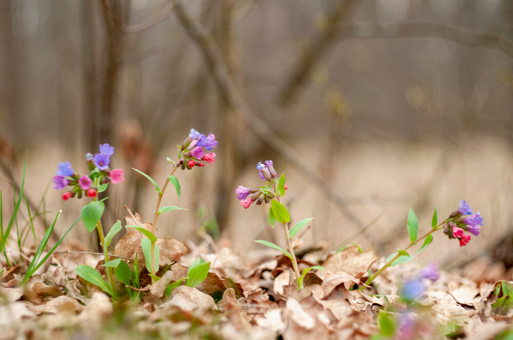 Медуница — это один из первых весенних цветков, обладающий красивыми мелкими соцветиями розового и фиолетово-синего цвета, которые вырастают из-под снега в средней полосе России уже в апреле. Эти яркие цветочки, распускающиеся среди погибшей травы, привлекают шмелей и других насекомых своим сладким нектаром, добавляя весеннему ландшафту красок и жизни.