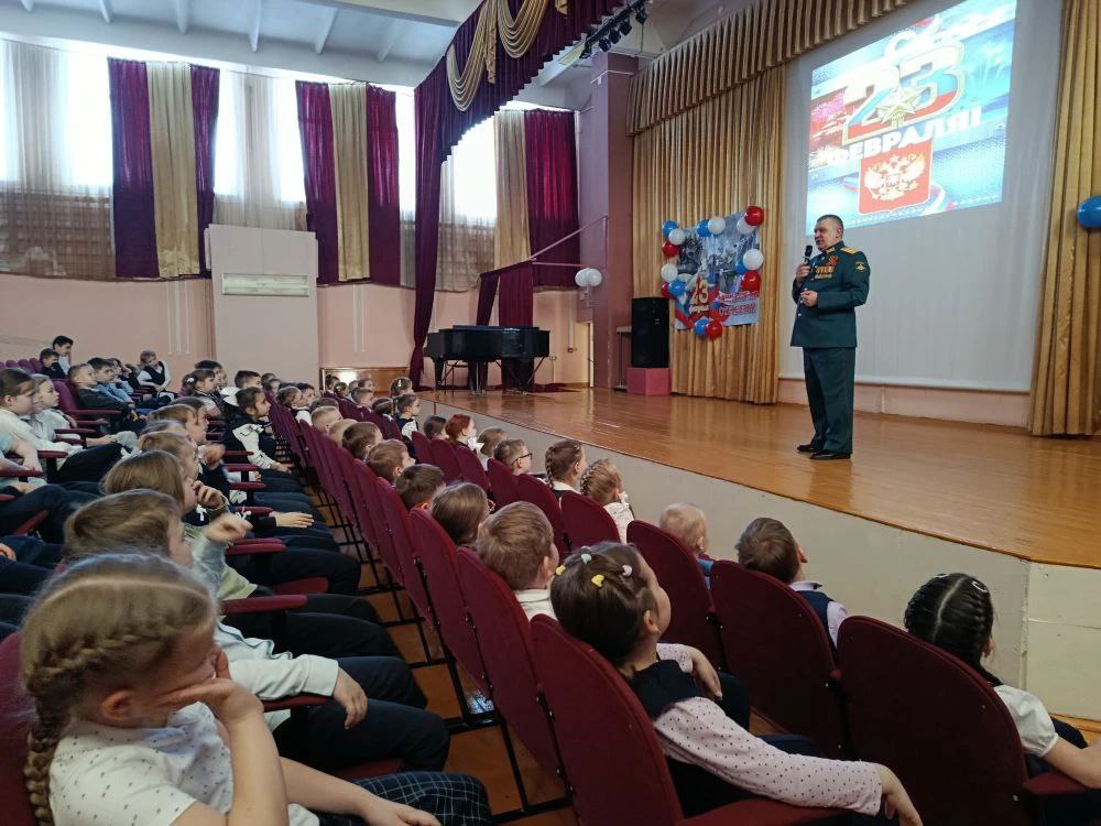 В Кургане в гимназии № 19 начальник отдела подготовки и призыва Алексей Белокур пообщался с первоклассниками. Военный рассказал детям о родном крае и ответил на вопросы, в том числе о том, как стать генералом.