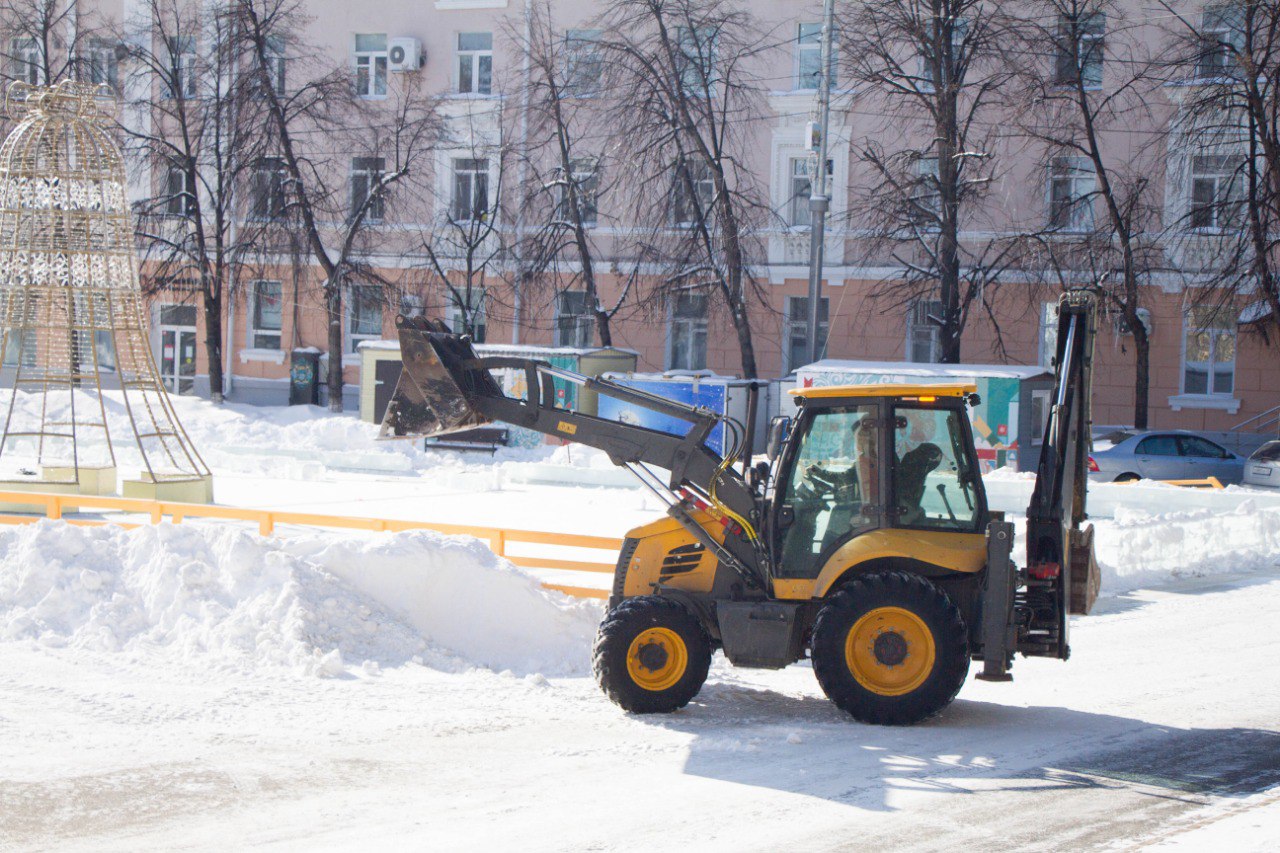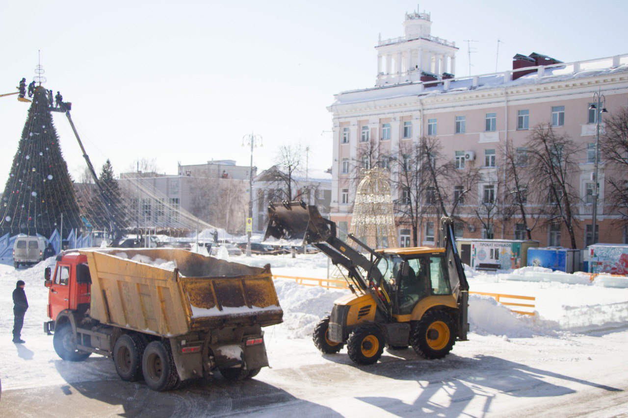 Из-за перепадов температуры лед становится непрочным, в связи с этим начался демонтаж конструкции главной городской елки и ледового городка на центральной площади.