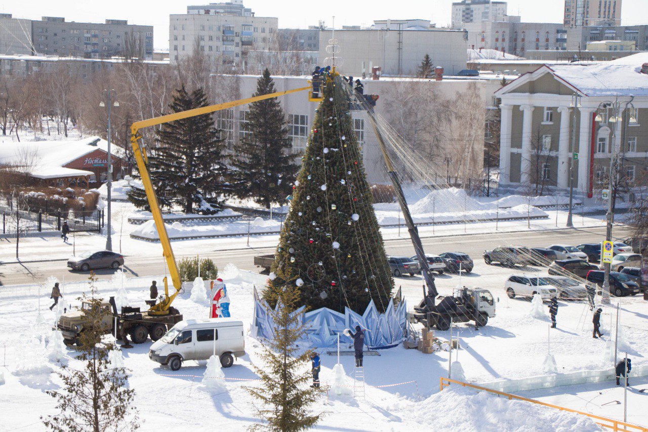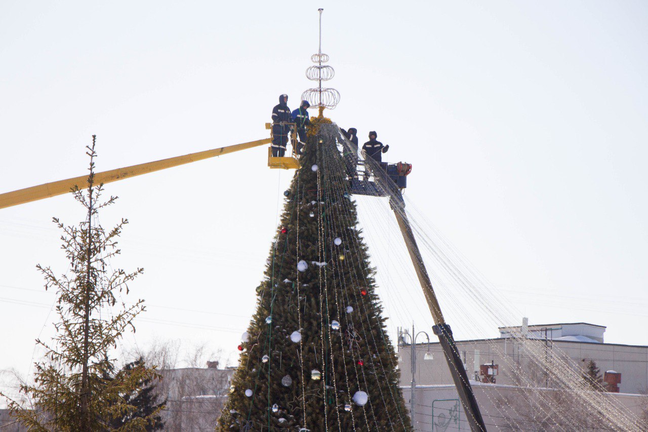 С елки снимают иллюминацию, которая подсвечивала главную новогоднюю красавицу, а также новогодние игрушки. В течение 2-3 дней главная городская новогодняя елка будет разобрана, а ее каркас вывезен. Каток, горки и лабиринт также будут демонтированы. Сегодня уже снимают ограждение с катка.