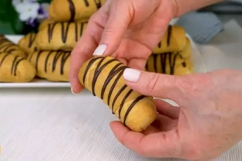 Далее рулетики следует выпекать в заранее разогретой до 180 градусов духовке около 25-30 минут, до золотистой корочки. После выпекания можно посыпать сахаром или полить шоколадом для придания дополнительного вкуса.