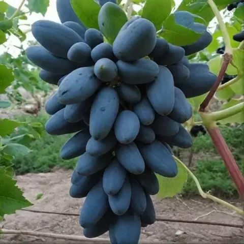 Грозди формируются на побегах текущего года, что обеспечивает высокий уровень плодоносности. Их коническая форма и рыхлое строение уменьшают риск гниения внутри кисти. Ягоды овально-вытянутой формы достигают темно-синего цвета с защитным восковым налетом. Плотная мякоть и сбалансированный вкус делают их идеальным выбором для свежего употребления и переработки.