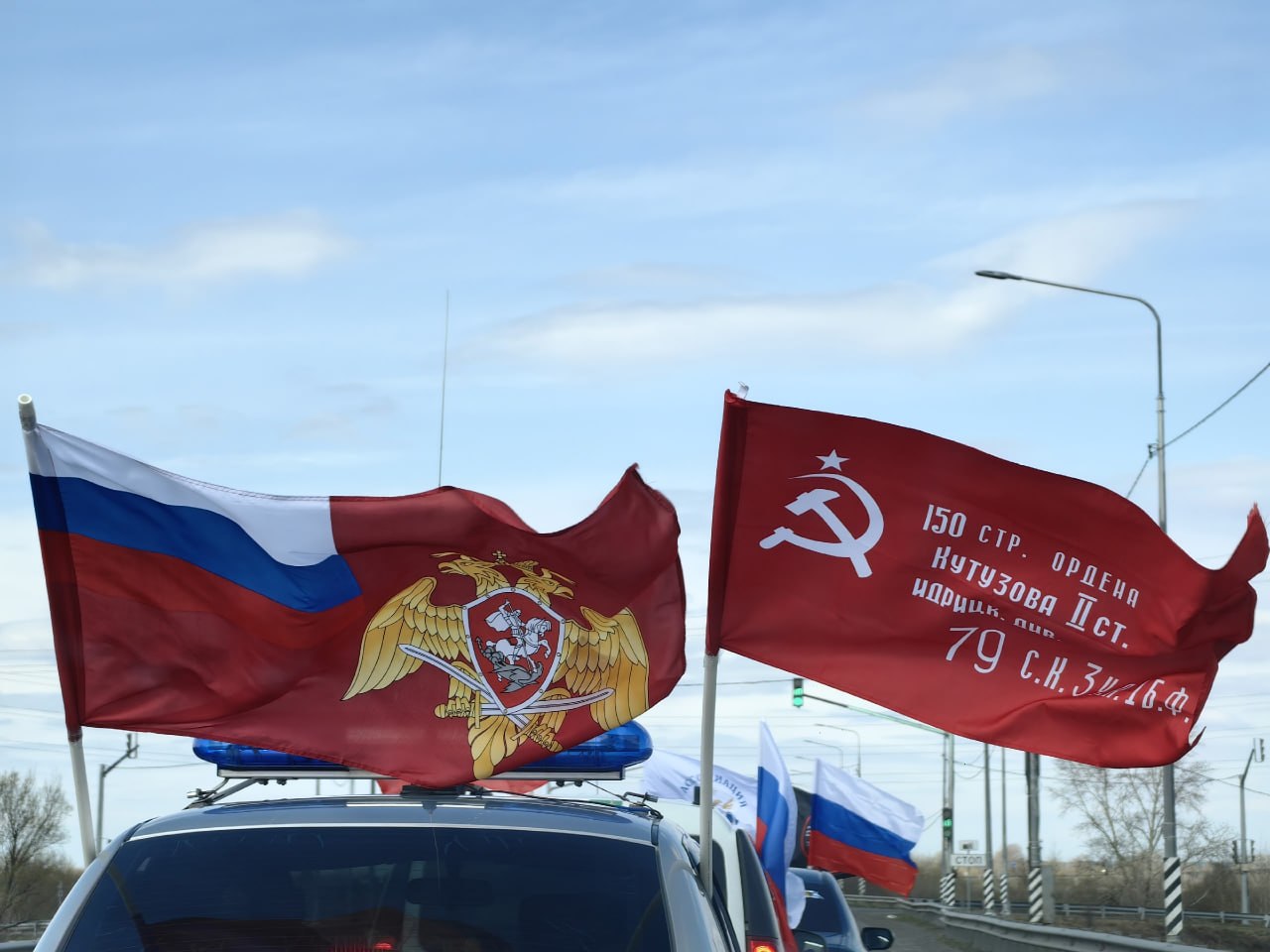 Сегодня, 23 апреля, в Кургане состоялся автопробег в поддержку международной акции «Диктант Победы». Колонна из 37 автомобилей проехала по центральным улицам города. Старт был дан в Кетовском муниципальном округе, далее маршрут пролегал через мемориал воинам 32-го лыжного полка и завершился у Парка Победы. Волонтёры, члены партии «Единая Россия», молодогвардейцы и другие жители города возложили цветы к памятникам.