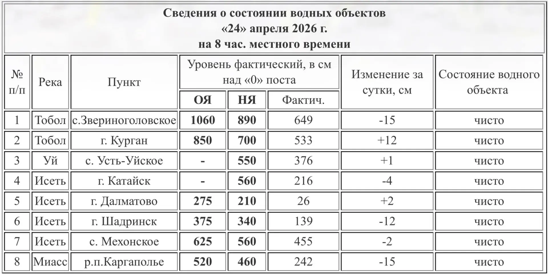 На 8:00 24 апреля уровень реки составил 533 см.