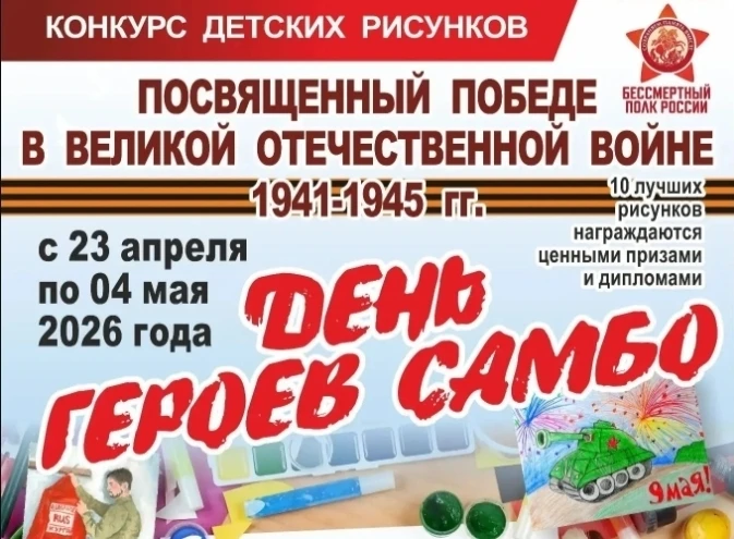В Кургане до 4 мая ведется прием работ на конкурс рисунков «День героев самбо», посвященный Победе в Великой Отечественной войне, организатором которого выступают Детско-юношеская спортивная школа № 4 города Кургана и Федерация самбо Курганской области.